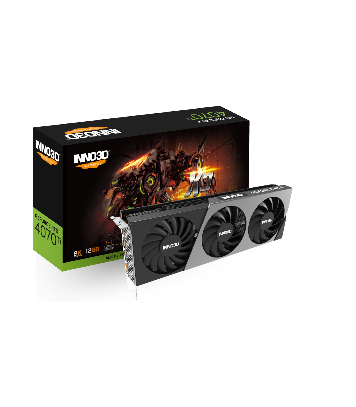 Inno3D Geforce RTX 4070 ti x3. Familia de procesadores de gráficos: NVIDIA, Procesador gráfico: Geforce RTX 4070 Ti, Frecuencia del procesador: 2310 MHz. Capacidad memoria de adaptador gráfico: 12 GB, Tipo de memoria de adaptador gráfico: GDDR6X, Ancho de datos: 192 bit. Máxima resolución: 7680 x 4320 Pixeles. Versión DirectX: 12.0, Versión OpenGL: 4.6. Tipo de interfaz: PCI Express x16 4.0. Tipo de enfriamiento: Activo