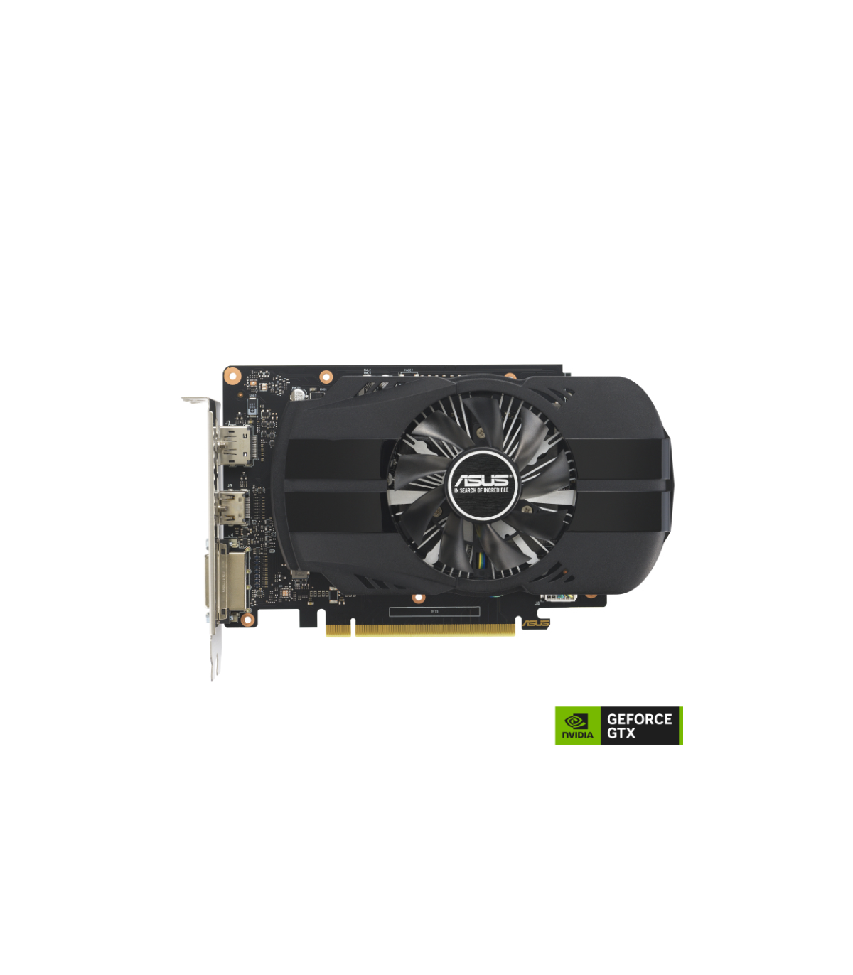 ASUS Phoenix PH-GTX1630-4G-EVO. Familia de procesadores de gráficos: NVIDIA, Procesador gráfico: GeForce GTX 1630. Capacidad memoria de adaptador gráfico: 4 GB, Tipo de memoria de adaptador gráfico: GDDR6, Ancho de datos: 64 bit. Máxima resolución: 7680 x 4320 Pixeles. Versión DirectX: 12.0, Versión OpenGL: 4.6. Tipo de interfaz: PCI Express 3.0. Tipo de enfriamiento: Activo, Número de ventiladores: 1 Ventilador(es)